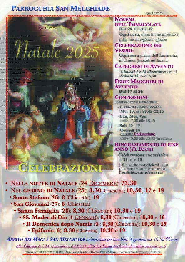 Per qualsiasi informazione: 06 3361 0196 - sm.parrocchia@gmail.com